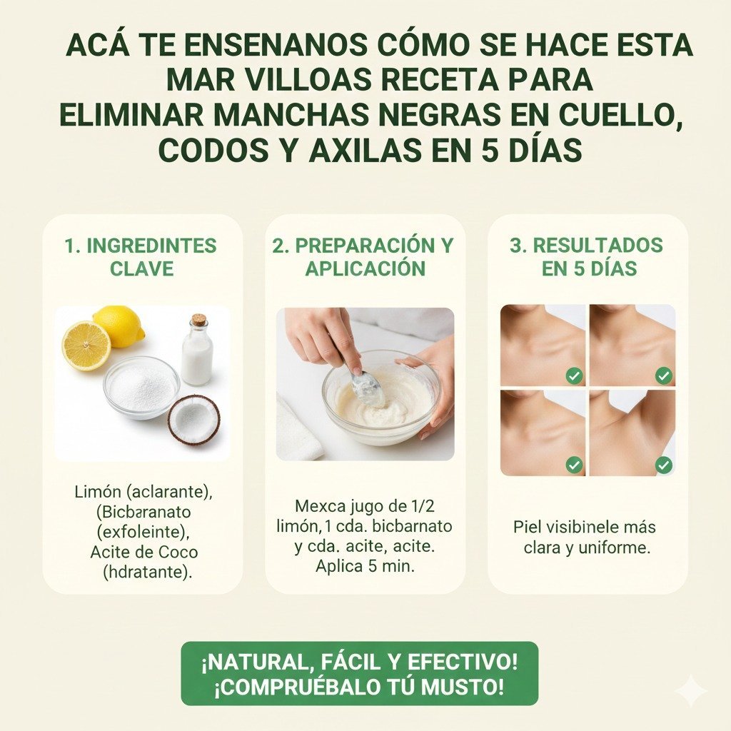 Acá te enseñamos como se hace esta maravillosa receta para eliminar manchas negras en CUELLO, CODOS y AXILAS en 5 días